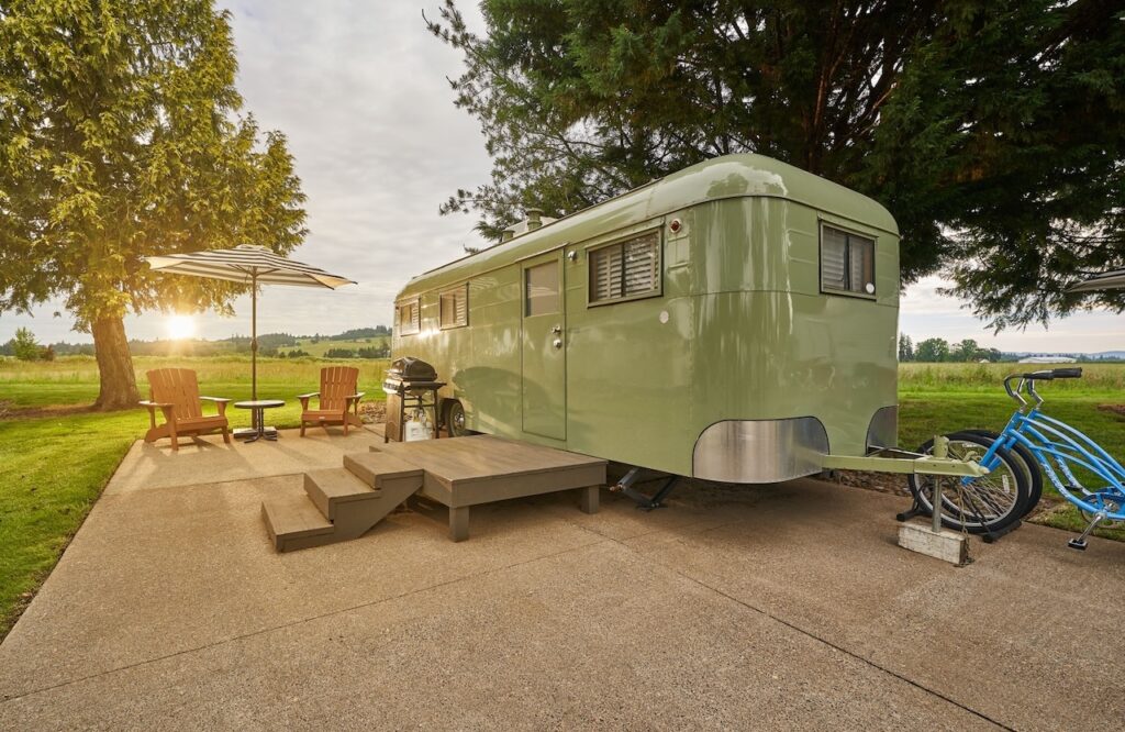 Located across the Yamhill River and accessible via pedestrian bridge, The Vintages offers a community of restored vintage trailers within the 14-acre Willamette Wine Country RV Park. Each trailer provides a unique lodging experience, complete with fine linens, terrycloth robes, a propane grill, cruiser bikes, and cozy charm—perfect for your wine tasting adventures. Book / Contact / More Info