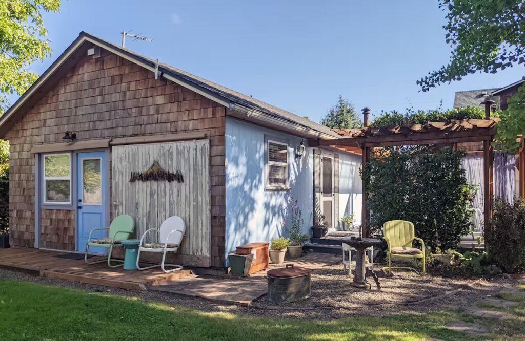 Originally an artist’s studio, this charming one-bedroom retreat features hardwood floors, a cozy living space, and modern amenities. The fully remodeled 520-square-foot home includes a full kitchen, bathroom, laundry, and a private outdoor dining area. Adorned with artwork curated by the host and local artists, this warm, creative space is a favorite for visitors seeking comfort and inspiration. Book / Contact / More Info
